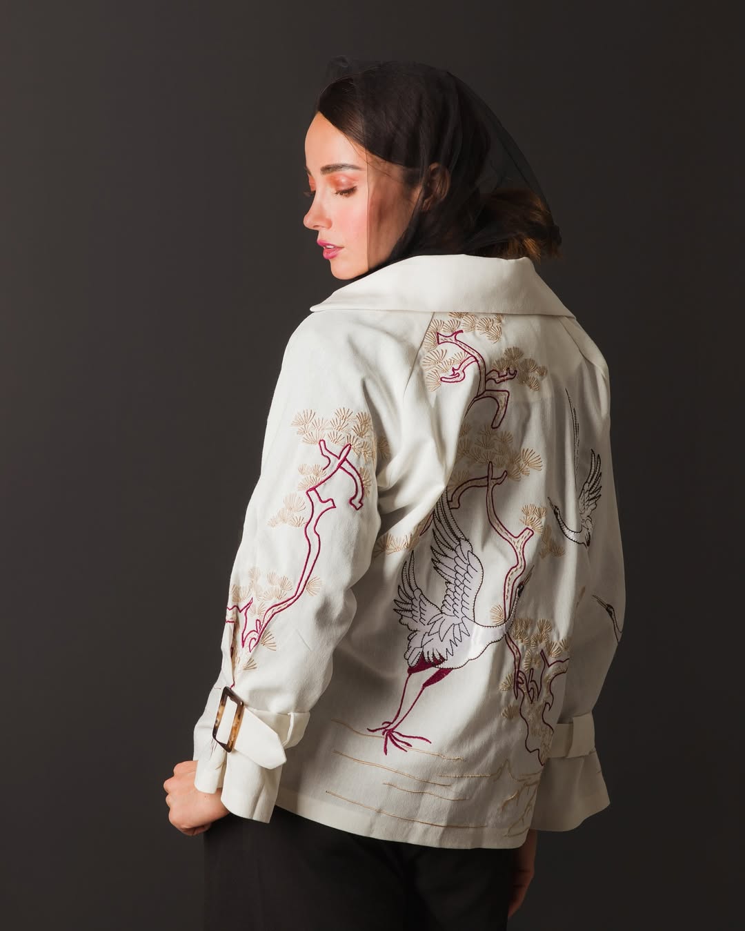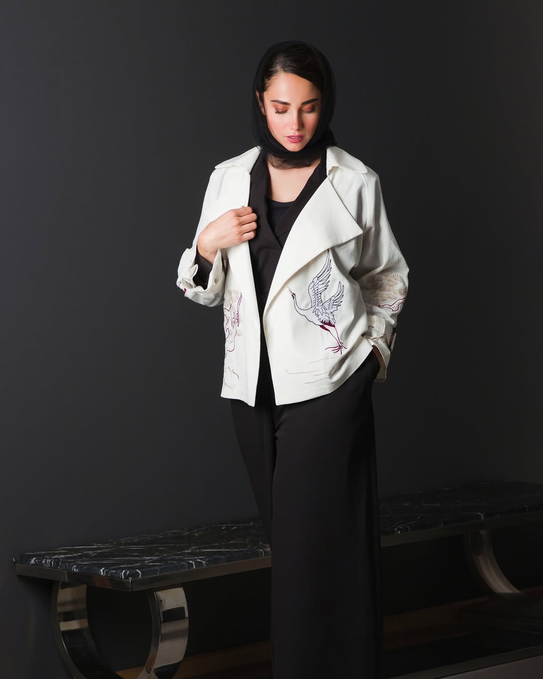 کت لینن با گلدوزی و تکه دوزی طرح درنا